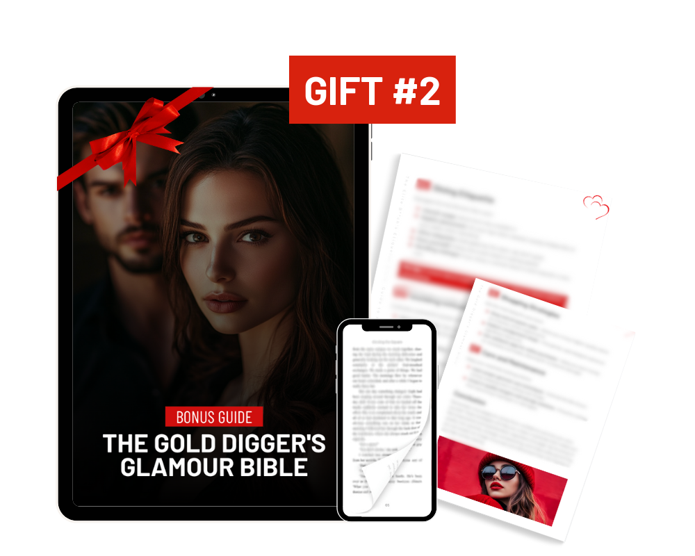 BONUS: 🎁 5 FREE GIFTS 🎁 to fast-track your ascent into the jet-set, including "The Gold Digger's Glamour Bible" and "The High-Value Head Games Playbook." ($497 value - yours free!)